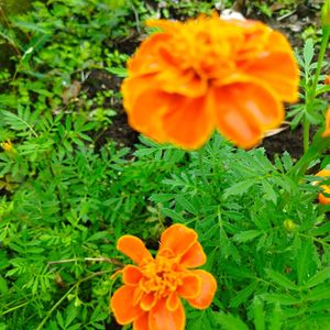 こんにちは☁ はっきりしないお天気です 今日のお花🌿 マリーゴールド モロヘイヤ 小さな花がさきだしました。 レウコフィルム 小さな可愛らしい🩷のつぼみが♫