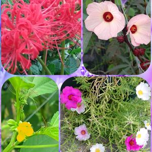 こんにちは😃 曇り空で涼しいので 畑まで ①風にのって香りがします♪ ゴーヤの花の香り🌼 これは雌花 ②モロヘイヤの花も付いて来たので ③カット✂️して 柔らかい葉っぱ が出るのを待ちましょう! 種は毒らしいです🤔 ④シオンの花 姫檜扇水仙 ガマ 秋らしく ⑤シオンは畑友から💜 🏷️黄色い金曜日 参加します♪