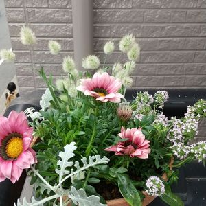 いつも行くお花屋さんに寄ったら…ず〜っと欲しかったバニーテールが〜🙌🤗 思わず買っちゃった~😂 ちょうどサクラソウの鉢を空けてたので、早速寄せ植えに〜🪴 ラグラス バニーテール ガザニア ロンギカウリスタイム 葉挿しで育ったシロタエギクも添えて…🥰