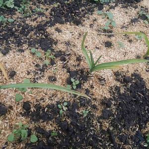 ニンニク。 遅植えだったけど、芽は出てきている。
