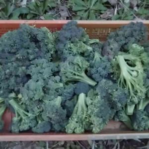 ブロッコリーの収穫。 花が咲いている株がちらほらあった。 もうすでに、春の装い。