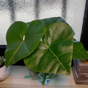 剪定した葉5枚 葉と茎だけで増やせるのかな〜?と思いながら4枚の葉は大きすぎたので♡型にカットしました🥰 昨日気がついたのですが茎から根が出てきました😍 しっかり根が出たらスリット鉢にお引越しします🌿 p.s. 残念ながら根は成長しても葉だけでは芽は出ないそう😊可愛ぃ葉を眺めて癒されています🥰