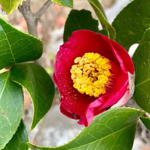 こんばんは😊 今日もおつかれ様でした*・゜゚☆ 庭のツバキですが今年は寒すぎ! 小さな木なのですが、ほとんどの花びらが霜にあたって黒くなってました…😢 健気に咲いてたこの一輪をアルバムに残します☺️