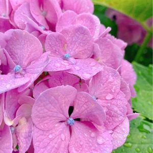 こんにちは 今日2枚目です 少し前から雨が降り出したので 雫の乗る紫陽花を撮りました💧 小さな青い蕾が可愛いです 🏷水滴の水曜日