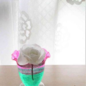葉っぱだけ飾りました。 器はペットボトルに 青マジックで色を塗っています。