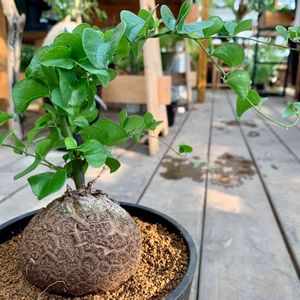 今まで紹介してなかったのですが、うちの亀甲竜です。 まだ芋の部分は直径3cmほどのチビッコです。 でもモリモリ割れめができて見た目はイッチョ前な感じです。 暖かくなってくると葉や蔓が枯れて芋だけになりますが、そこで枯死してると勘違いして捨ててしまう人がいるそうです。 芋が早く大きくなってほしいな〜