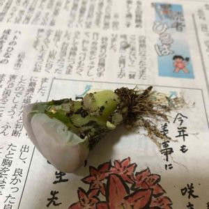 コノちゃんデビュー( ´罒`*)✧" あまりこの辺りで見かけないのと、なかなか状態のいい子に出会えなかったけど、いつも行く花屋さんに入れてください!と心で嘆願していたら、昨日いた💕 いろいろあったけど、丸いのと足袋とひとつずつ連れて来ちゃった〜 花は終わった感じだけど見慣れた栽培者さんのラベルは安心感が(ᵒ̴̶̷ ᵕ ᵒ̴̶̷⁎)