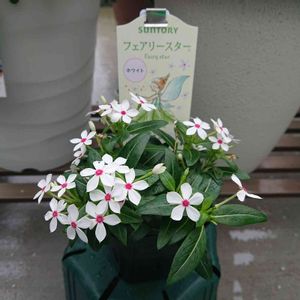 おはようございます‼️ 大雨ですが、もうすぐ止む予報😀 昨日お迎えしたSUNTORYさんの フェアリースター ⭐ホワイト🎵 ★花が小さくてかわいい~‼️ ★ずっと花が咲いてるー‼️‼️ ★真夏の日射しも全然大丈夫で育てやすい‼️‼️‼️ などの理由でリピ確定です😁 昨年は すぐ楽のミルク&ピンクを育てました。 ミルク(ホワイト)とピンク(コーラルピンク?)で成長差があったので、今年はお花の色合いがお気に入りのホワイトちゃんを単鉢植えで育ててみようと思います😆