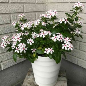 今日はまだ雨降ってませんがどんよりしてます☁️ 🍀サントリーフラワーズさんの🍀 🤍💕フェアリースター💕🤍ホワイト🤍💕です 💕🤍極小輪のニチニチソウです💕🤍 毎年普通のニチニチソウを何株が花壇に植えていましたが梅雨時期にダメになることがあるので今年はこの一株だけを鉢に植えてみました🤗