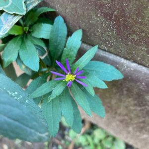 ミヤコワスレ⁉︎ 季節をワスレた? コンクリの隙間から花が一輪。。寒さで花びらも細く丸まっているようです それでもvividな色合いが目立っていました💛💜 また春に♪ ミヤマヨメナの園芸品種🌿