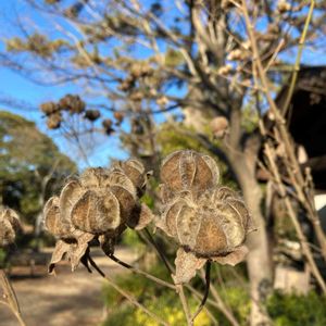 フヨウ(芙蓉) 大きい茶色のカップ🤎 華やかなフヨウの花後です♪ フカフカと大事に種を抱えて可愛いです♡ そろそろ旅立ちかな…
