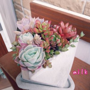 友達の旦那さんが葉挿しから育てた苗、とってもキュート(´,,•ω•,,)︎💕︎💕お気に入りの寄せ植えです🎶 (前pick 2021.12.26) ~旦那さん苗~ ・エレガンス(月影) ・フィオナ ・ピンクルルビー