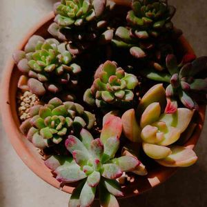 おはようございます。 今日も、昼間はいいお天気みたいですね。日光浴させてあげなきゃ☀️ 昨日もう一つ寄せ植えました。こっちも、おうちのこを寄せ寄せ❣️ 先週お迎えしたラウンドリーフさん、1本だけ入れたけど、お粉ハゲハゲ👶🏻 お粉多肉の寄せ植えにコツとかあれば教えて下さーい😕 しかし、、エケベリアと札に書いてあるけど、エケ、、っぽくないですよねぇ、、
