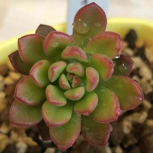 未だに名前が分からない最古参多肉植物(一番下)。 秋冬になると斑に紅葉するから最初は病気かと思ったけど毎年こうだから通常運転っぽい。 せめて花が咲けば…。 追記:もしかしたらミニベルかもしれない。