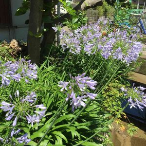 アガパンサス属 アガパンサス🌱 お母ちゃんがまだ存命の頃、お母ちゃんちから株分けしてくれた子をうちに持ってきて植えてくれた花。 お母ちゃん、ちゃんと今年も綺麗に咲いてくれたよ~😊🎶 どんどん殖えてぎゅうぎゅうになっているので花数が少なくなってきました。今年は秋になったら株分けをして植え直さないとなぁ😅💦大作業は思うばかりでなかなか作業する時間と気力がないこの頃ですけど(ヽ´ω`)トホホ・・頑張ります😁💦 ☀30℃/21℃💎💎💎💎