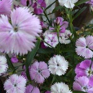 中の方で、 元気に咲いていたので、 デージは 何年か前からの零れ種🌼 なでしこは、 挿し芽しておいたもの🌸 やっぱり挿し芽で、 更新した方がいいのか、 親株は、お花がさっぱり 根詰まりかなー。🤔