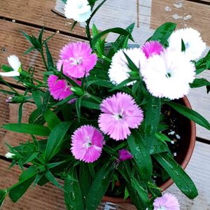 なないろ小町(四季咲きなでしこ)💕 花色が白、ピンク、赤へと変化していくみたい。 昨日、お持ち帰りしました♡ 小さくて可愛い~😊 また、増やしてしまった😅