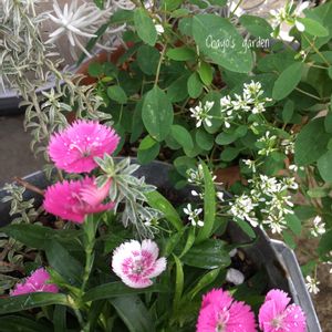 先日HCでカラーマジシャンの撫子 二株連れて帰りました😄 白い色からピンク、赤と変わってきます😃