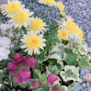 先週作った寄せ植え∩^ω^∩ 手前のオレガノミルフィーユという観賞用オレガノに一目惚れ♡