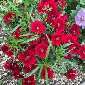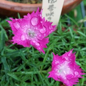 雨が多くてジメジメしがち。こんな時は、気分を変えて真紅が鮮やかな四季咲きナデシコを。