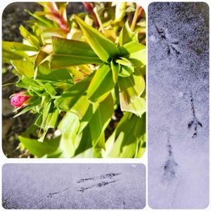あたり一面雪景色❄❄❄ 餌がないのですね🐦 四季咲き撫子の柔らかな葉っぱだけついばんて行きました🐦 蕾は残っているのでお花は咲いてくれそう🌸🤗