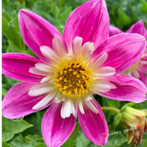 🍀ダリア コラレット咲き (スターシスター)🍀 雨の中のダリア❣ 晴れた日にもう一度会いたいなあ💕 コラレット咲きはあまり見ないし😊