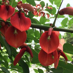 沖縄のイメージが強い「アメリカディゴ」の花がこの時期に咲いていました! どこかエキゾチックな赤い花が、とても新鮮です✨ 横浜の、キリンビールの工場の敷地にて。