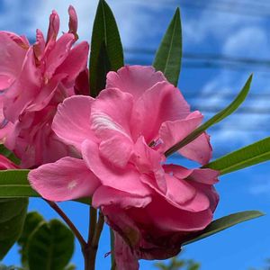 キョウチクトウ 母が挿木したものを鉢植えにしていたら小さい鉢なのにぐんぐん成長して、根が鉢底の穴から地面にのびてしまい、それから年月がたった。今年春に植え替えをしようとした際、根を切ってしまった。 今年は花が咲かないだろうと思っていたら なんと花を咲かせていた! 植え替えた場所にまだまだ根が伸びてないのに頑張ったんだな。