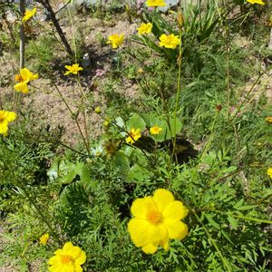 我が家のキバナコスモスは本当に黄色い花です。 草だらけですけど。