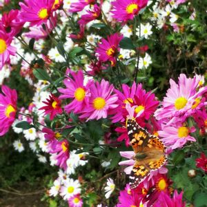 昨年の秋にスマホカメラで撮影した秋菊です。蝶々が花の蜜を吸いに来てました。