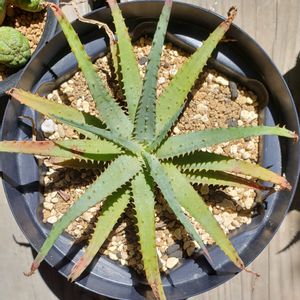 雨ざらしにすると、雨上がり後の植物たちの生き生き具合が素晴らしいが、特にその反応が良いと感じるのがアロエのカスティロニアエ。 そろそろ群生する気配を出してくれないかなと覗いてみたら、子株1つ発見。 もじゃもじゃへの一歩を踏み出した。 昨日から先程まで雨ざらしにしていたけど、さすがに調子に乗り過ぎると痛い目に合うと判断し、軒下に移動した。