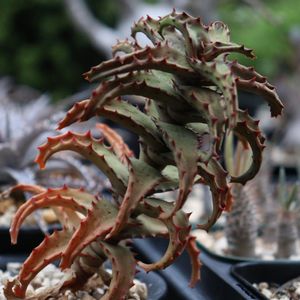 カスティロニアエ、葉が緑になり、棘(葉の縁)の赤とのコントラストが良い感じになった。 3/20はベランダに出してすぐの時で水をほぼ与えずに冬越ししたばかり。3/25は水やり後ややぷっくり。今日6/16は先日の雨で葉の色に鮮やかさが出てきた。 成長が遅くて中々葉が増えないけど下葉があまり枯れないから焦りは無い。