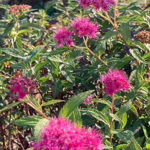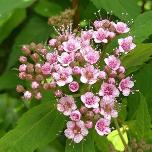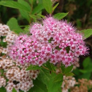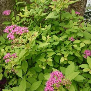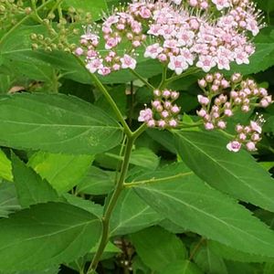 ライムの葉が綺麗なシモツケがピンクの花を咲かせています🌿 今年は少し大きくなって、お花も沢山🎶