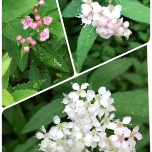 シモツケの白 薄ピンク色 ピンク色 同じ場所で少し離れて咲いてましたよ🤗👌 🚶♀️歩いてると出会える花が有りますね💕