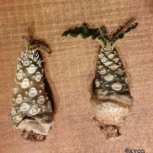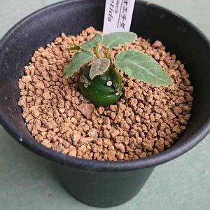 初めての塊根、今年こそうちに塊根を迎えようと、 初めて塊根をお迎えしました。 丈夫で育成スピードも比較的早く、育てやすいということで。 ドルステニア・フォエチダをお迎えしました。 まだ親指ほどの大きさ、大きくぷっくり育ってほしい。