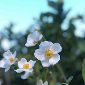 今晩は🌃 秋明菊青空の下で元気に咲いてますよΣ(゚∀゚ノ)ノキャー(≧∇≦)