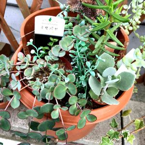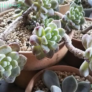 葉挿しの子たちも元気に成長してきたクスビタータ🙌 見た目は誰かさんにソックリで、情報も少ない謎セダムさん😅