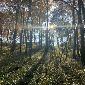 いつものウォーキングコース にて🍁🍁 可愛い実を見つけました。 林の中 落ち葉の道🍂🍂