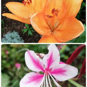 おはようございます☂️ 昨日出会ったユリとガウラです‼️ ユリは寄り添うように咲いていました🧡 ガウラはGSで教えていただいた花です❗以前投稿したものより色が鮮やかです😍