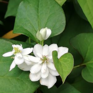おはようございます☁️ ヤエドクダミです‼️ GSで知ってはいたのですが、初めて出会いました😍 一昨日、病院の待ち時間に周囲をお散歩しているとひょっこり顔を出してるではありませんか😉蕾までついていて親子のよう👪 病院の長~い待ち時間に感謝です😊