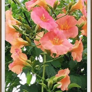 こんにちは‼️ ノウゼンカズラです🧡 1週間くらい前に撮りました🧡歩道の植樹帯に植えられていました🧡 上の方に咲いていたので背伸びして撮りました🧡 優しい感じのオレンジが可愛いです🧡