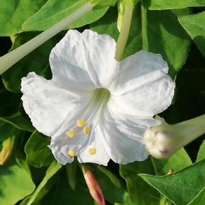 おはようございます☁️ 白いオシロイバナです🌼 先日投稿したピンクと同じところに咲いていました🌼 ピンクとはまた雰囲気が変わりますね🌼 他の色も見つけたらまた投稿したいと思います🌼