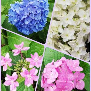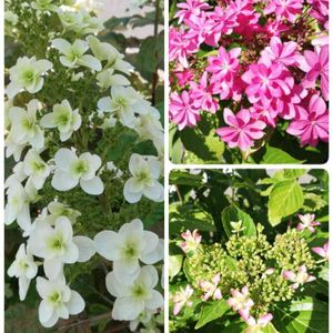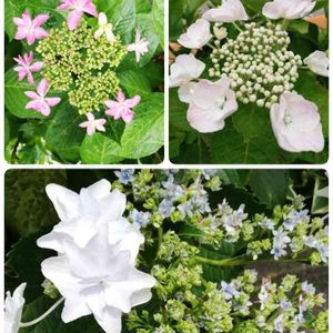 おはようございます🌞 今日はアジサイ。 一週間くらい前に撮った写真です😊 左は柏葉アジサイだけど他はわかりませ~ん😣