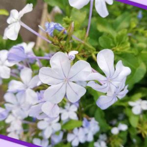 おはようございます🌞 近所の家に咲いていたルリマツリです💜 白い花弁に入った紫色の線が素敵な花です💜