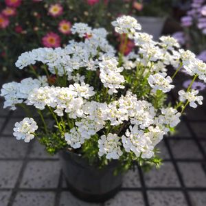 一般的なイベリスよりも、花がひと回り大きなイベリススノーボール おつとめ品で見つけました🙌 切り戻してこんもり茂りますように