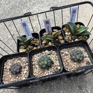 先週、フリマ行った時に会場の近くでコーデックスやアガベなどの即売会やってて目ん玉飛び出るくらいお高いやつが並ぶ中になんと1pot100円のアガベさんが!! そして別のブースでも100円のハオルチアさんも!! 嘘だろ?と思いつつお店のいかついお兄ちゃんに「まぼろし?」と確認。「まぼろしじゃないっス」と言われGETしてきた子達がこれです。 名無しだからだそうですが全然気にせんよ!おん。