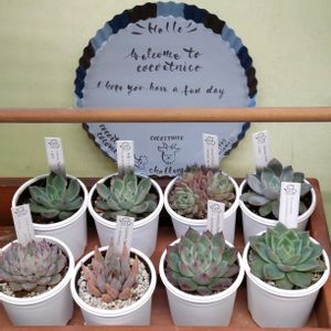 フラリエで行われている多肉クリスマスに行って来ました 久しぶりのイベント参戦♪ 思った程混雑してなくてゆっくり見られました! 戦利品(の一部)♪ ①雫玉 いろんな色が入ったなんとも言えないステキなコ💕 出店者さんとお話してたら生産者の方でした!直接買える特別感☺️ 生産者さん曰く、このコは写真写りが悪いとの事😅 確かに実物の方がもっとステキです💕 ②マッコス白斑 マッコス錦とは違うのかな?白の斑入りって事かなと思ってます マッコス並みに増えるタイプのコだといいなー☺️ ③④入口のトラックの荷台 入り口でこれを見るとやっぱりテンションが上がります😁