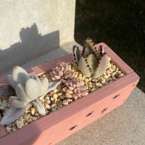 増やしてた姫秀麗錦をまとめて植え替え~ ピンクになって来て可愛い♡♡ もっと増やしたかったけどまた春に( *´艸`)グフフ 今日は休みの旦那を駆り出して多肉棚にビニール張りました( ᐛ )و 新しく棚を作ったのでビニールも新しく💦 途中で材料足りなくなって横と後ろだけ出来上がったよ🤣🤣🤣笑