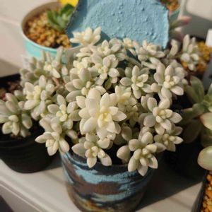 今年に入りお初、そして1周年の「🏷毎月13日と14日は葉挿しの日」 に参加いたしまーす(*˙︶˙*)ノ゙ 姫秀麗錦ちゃん🍀 葉も増えてスクスク成長中*。٩(ˊᗜˋ*)و*。 変化がよくわかるでしょ〜(๑´ლ`๑)フフ♡ 葉の白さは変わらず、お花が咲いているみたい (✿︎˘︶˘✿︎ ).。.:* ♬︎*゜ꕤ*.゚ この状態はいつまで続くのかなぁ〜(’∀’*?? (ꕤ*˙˘˙)⚘𓈒𖧷 ⁺.ホッコリンコ~💕