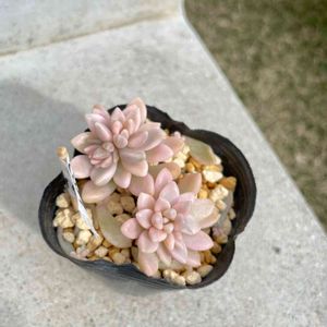 グラプトペタルムの姫秀麗錦です♕ 透明感がある葉がほーんのーーーーりピンク色に紅葉していてキレイです☺️分枝したり根元から子株が出ていたり、これからも楽しみなひと苗です💖